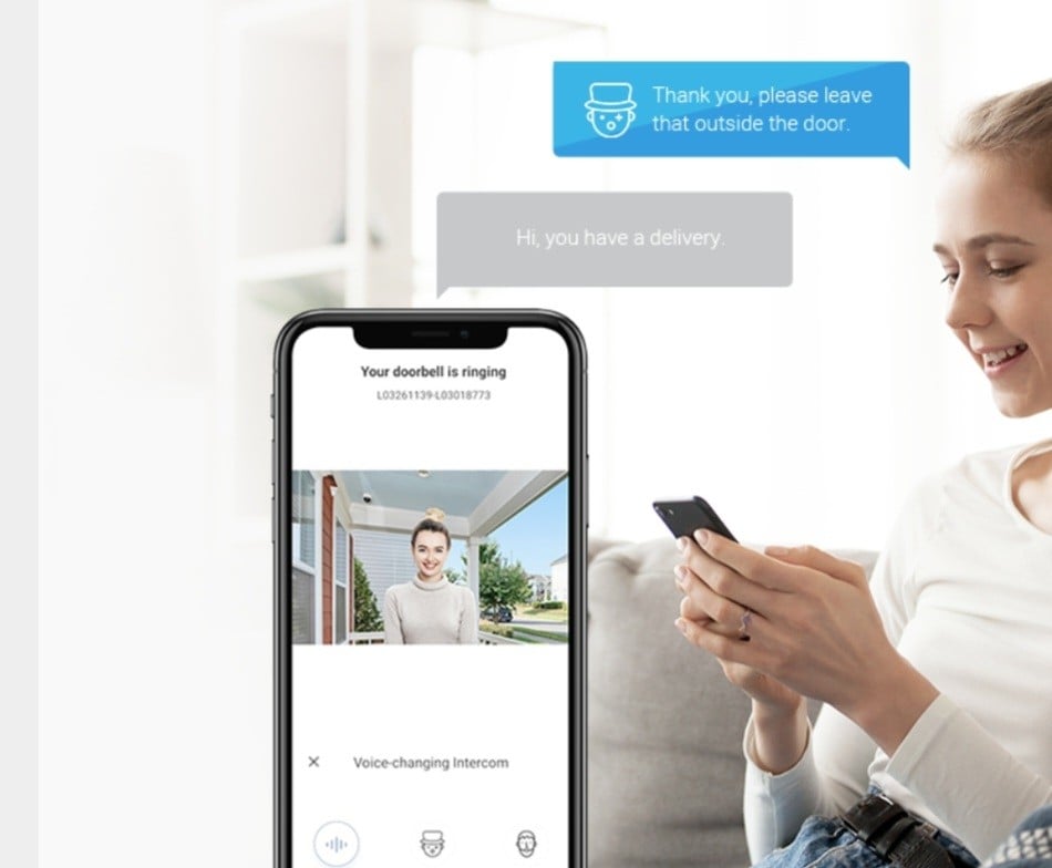 - الجهاز مزود بميزة تغيير الصوت لإضافة طبقة أمان إضافية عند التعامل مع الغرباء.